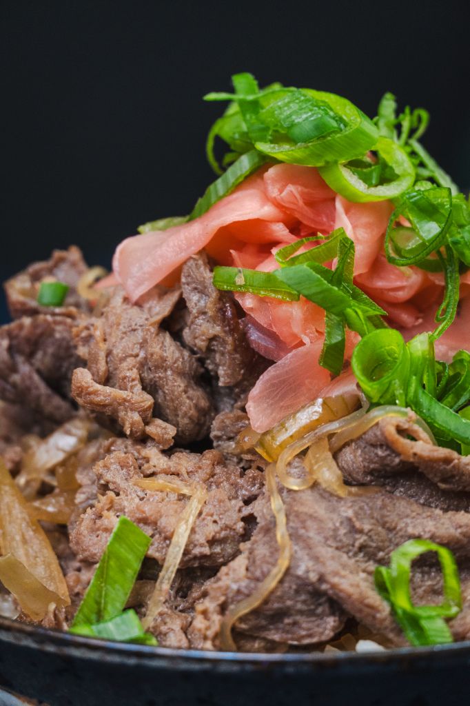 wołowina / cebula / Shirataki / czerwony imbir / cebula dymka / dashi / ryż