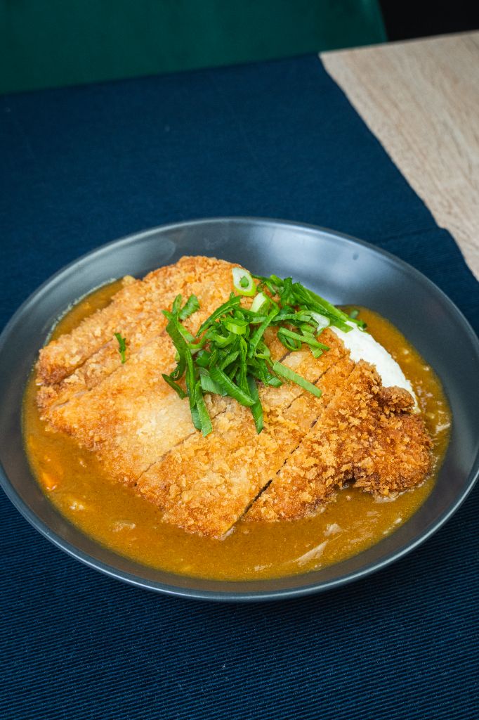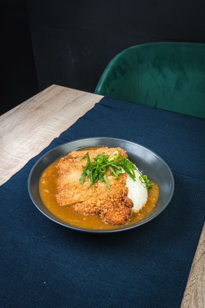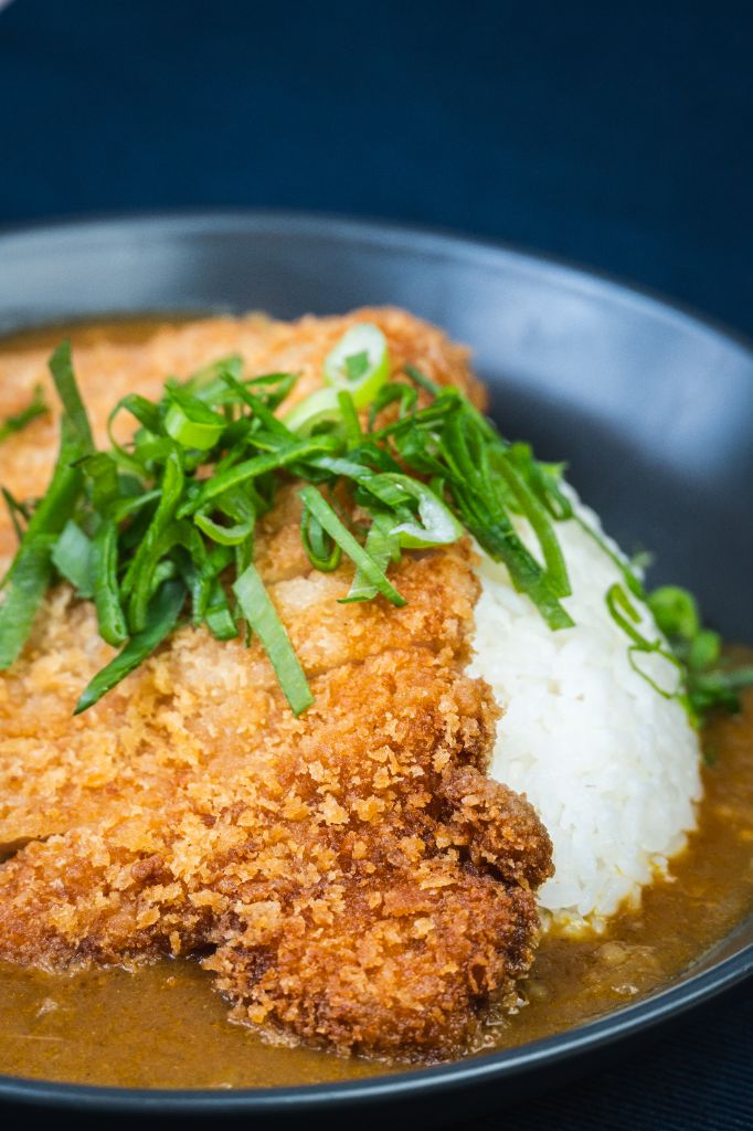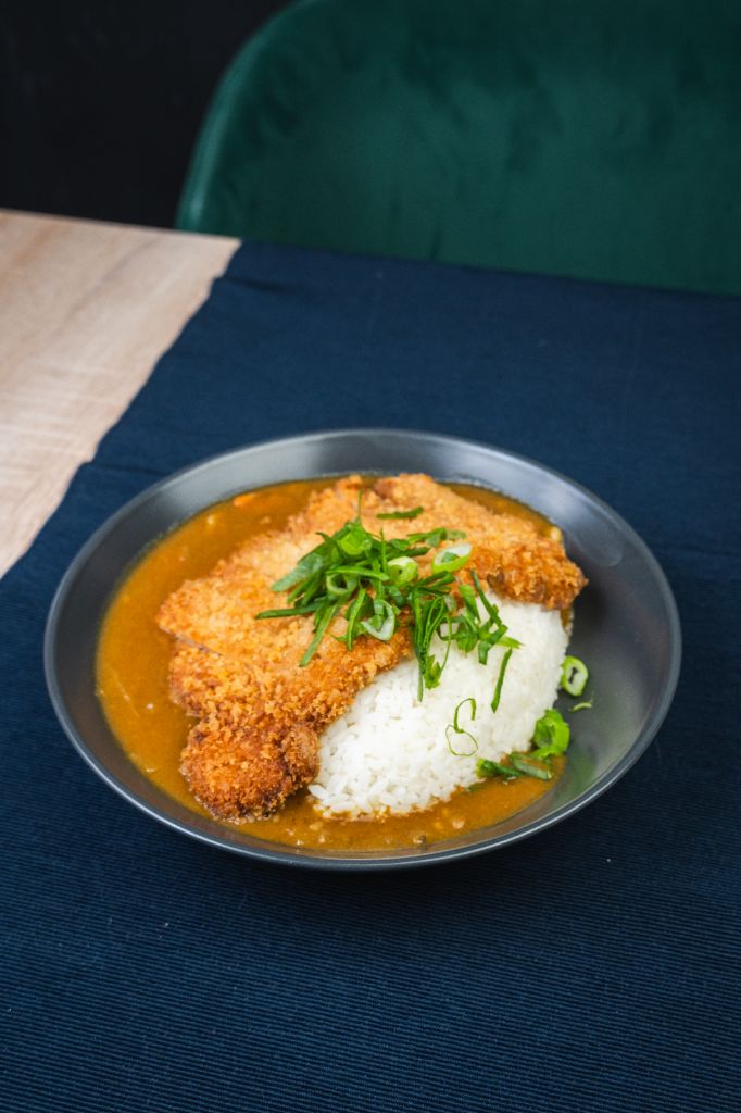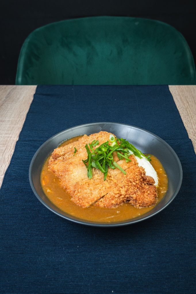 wieprzowina / panko / warzywa / cebulka dymka / sos curry / ryż