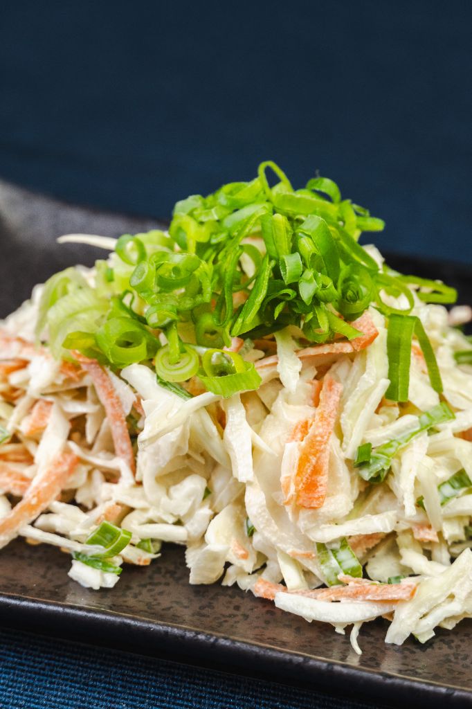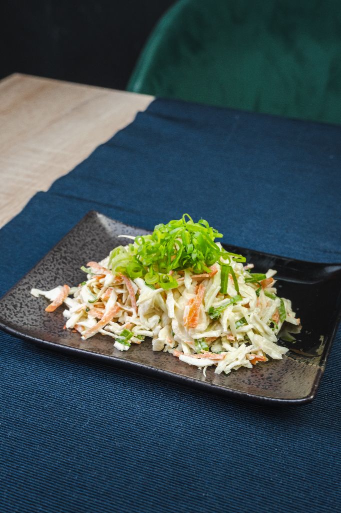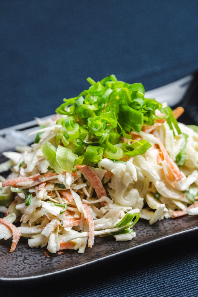 Soczysta i orzeźwiająca surowa kapusta z dodatkiem świeżej zielonej cebulki i majonezu. Nasza popularna sałatka o każdej porze roku