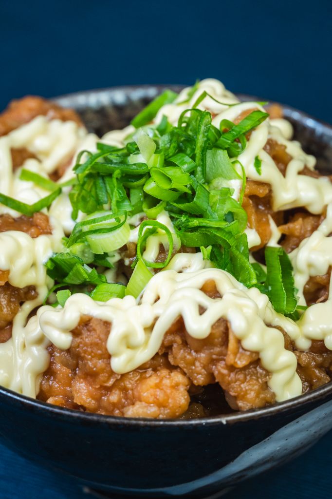 kurczak / sałata / majonez / cebula dymka / dashi / ryż
